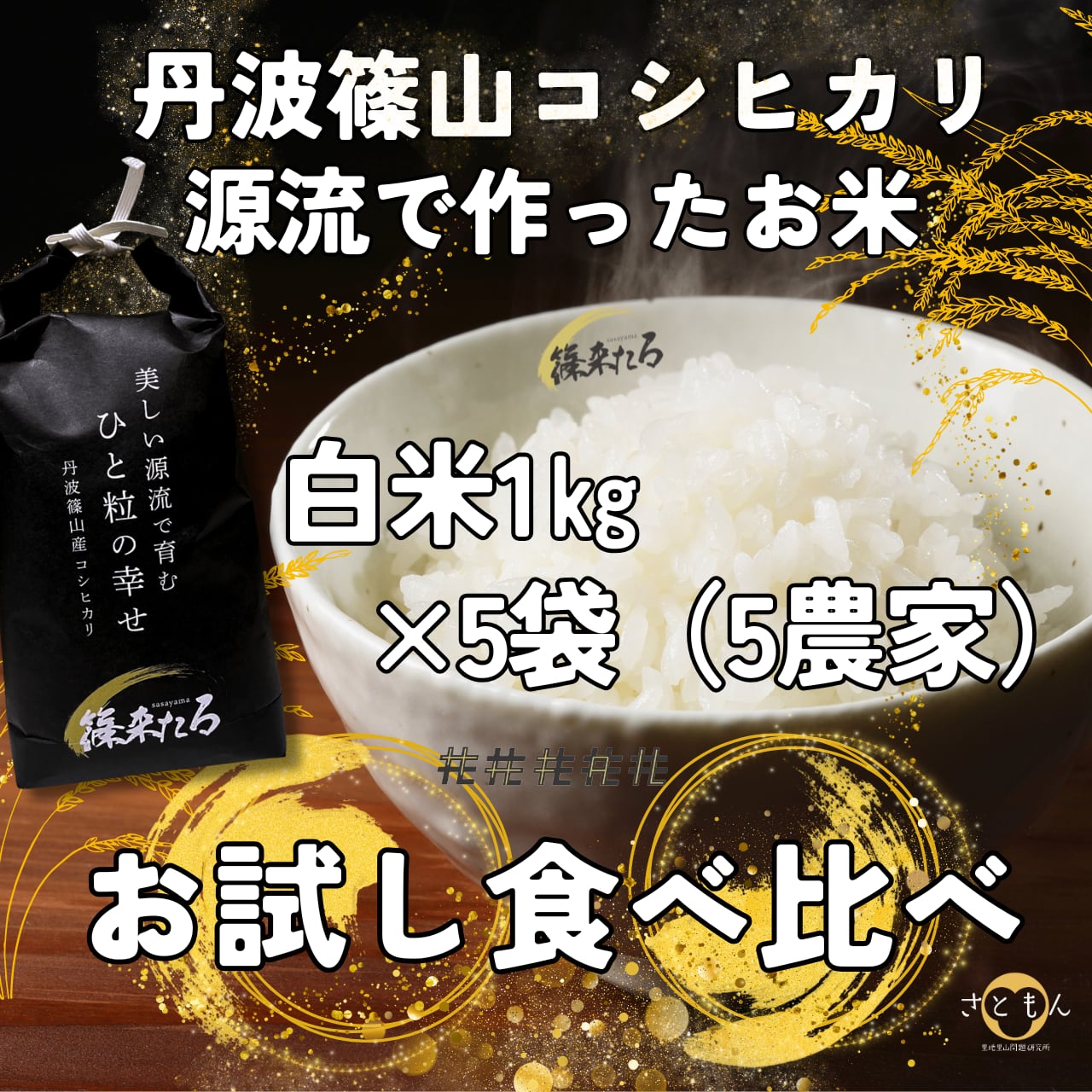 『篠来たる』源流のお米の定期便 初回お試し 白米1kg×5袋 食べ比べ ※送料無料