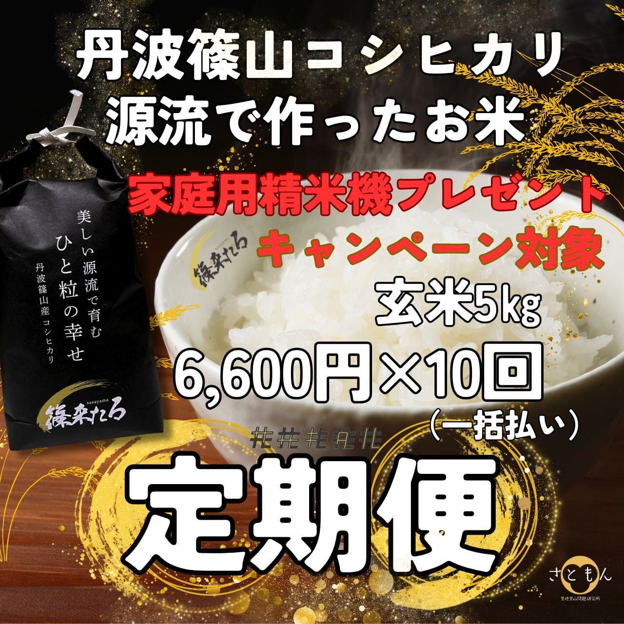 【精米機プレゼント】『篠来たる』源流のお米の定期便 毎月×10回 ※送料無料