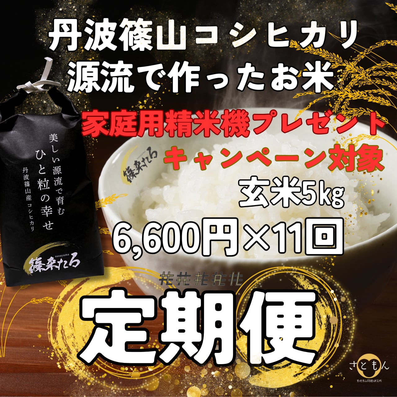 【精米機プレゼント】『篠来たる』源流のお米の定期便 毎月×11回 ※送料無料