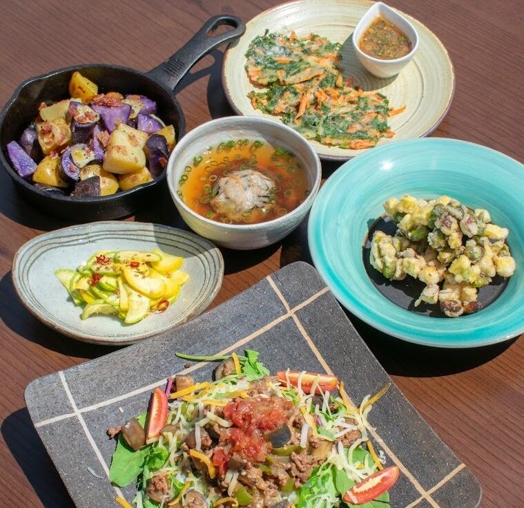 ★9月:さつまいも、ごぼう、ピーマン、万願寺とうがらし、バターナッツ、モロヘイヤ、空芯菜、ミニタマネギ、長茄子、等